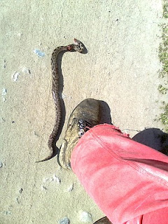 που πατάμε όταν πάμε να ελέγξουμε τα μελίσσια μας.Μια άλλη έχιδνα εδώ